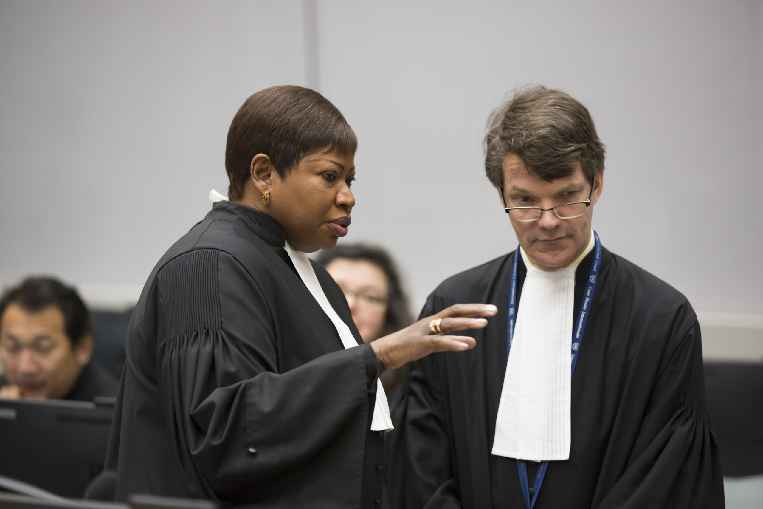 Pictured here: ICC Prosecutor, Fatou Bensouda (left) with Benjamin Gumpert, Senior Trial Lawyer of the ICC Office of the Prosecutor at the opening of the trial in the case The Prosecutor v. Dominic Ongwen, on 6 December 2016 © ICC-CPI