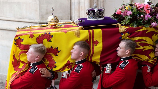 A5 NEWS | Royaume-Uni  – Des présidents, des Premiers ministres, des Princes et des Princesses, et d’autres personnalités publiques se sont assis côte à côte pour rendre un dernier hommage. Un témoignage de son attrait de grande portée et de sa diplomatie habile. Le cercueil est transporté par des porteurs de pâles après les funérailles d’État de la reine Elizabeth II à l’abbaye de Westminster, à Londres, en Angleterre.